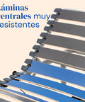 Incluye cuatro arcos metálicos laterales que evitan el desplazamiento del colchón durante los ajustes y un sistema anti-ruido para un descanso sin interrupciones.