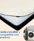 Su funda ortopédica es fresca y transpirable, ayudando a regular la temperatura y ofreciendo una sensación de frescor durante el descanso. Además, es desmontable y lavable a máquina hasta 30 ºC, facilitando su mantenimiento.