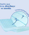 - DISEÑO EN CUADRICULA: El diseño superior del colchón incorpora cortes en forma de cuadrícula, que favorecen la transpiración y la adaptación por zonas. Mejora la comodidad en puntos de presión como hombros y caderas.