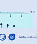 - COLCHÓN DE ESPUMA HR: Colchón con núcleo de espuma HR de alta resistencia con 15 cm de grosor, que ofrece un soporte firme, duradero y ergonómico. Ideal para quienes buscan confort diario y estabilidad en el descanso.
