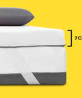 - En resumen, el topper viscoelástico de 7 cm es una solución práctica y económica para mejorar la comodidad de tu colchón sin tener que cambiarlo por completo. Este topper ofrece una capa adicional de soporte y confort, gracias a su espuma viscoelástica de alta densidad y su funda transpirable y lavable. Recuerda dejarlo reposar durante 24 horas antes de usarlo para que recupere su tamaño y forma original.