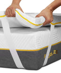 • Una de las características más destacadas de este topper es la inclusión de partículas de gel en su composición. Estas partículas juegan un papel crucial en la regulación de la temperatura corporal durante el sueño. El gel ayuda a disipar el calor acumulado en el cuerpo, manteniendo una temperatura fresca y confortable durante toda la noche. Esta capacidad de enfriamiento es especialmente beneficiosa para personas que tienden a sobrecalentarse mientras duermen, proporcionando un alivio significativo y mejorando la calidad del descanso.