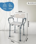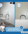 Esta silla ortopédica de ducha es muy ligera, ya que está fabricada en aluminio y PVC, lo que facilita moverla o colocarla en la posición deseada sin esfuerzo, utilizando las asas del respaldo. Los reposabrazos, cubiertos de espuma, mejoran el agarre y proporcionan mayor comodidad al usuario. El montaje es sencillo y rápido.