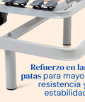 Arquillos sujeta colchones. Se incluyen cuatro arquillos sujeta colchones en los laterales y un arco inferior en la base. Estos arquillos aseguran que el colchón se mantenga en su lugar, evitando desplazamientos tanto durante los ajustes de la cama como en el descanso. Esta característica ofrece una experiencia más segura y cómoda para el usuario.